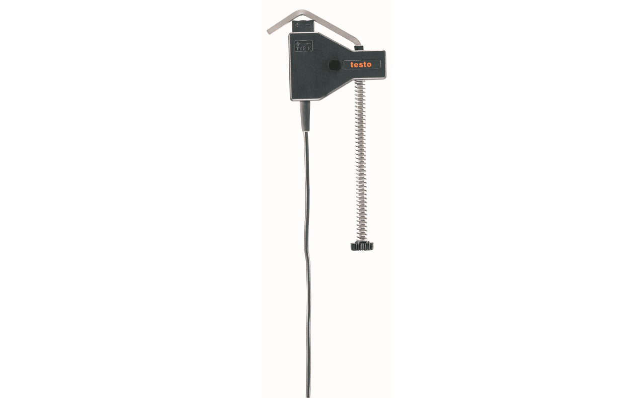 The testo Temperature Probe with Clamping Bracket is designed for easy and reliable surface temperature measurements on pipes. With a clamping bracket that fits pipe diameters ranging from 5 to 65 mm, this probe allows for quick, secure attachment, ensuring accurate temperature readings.