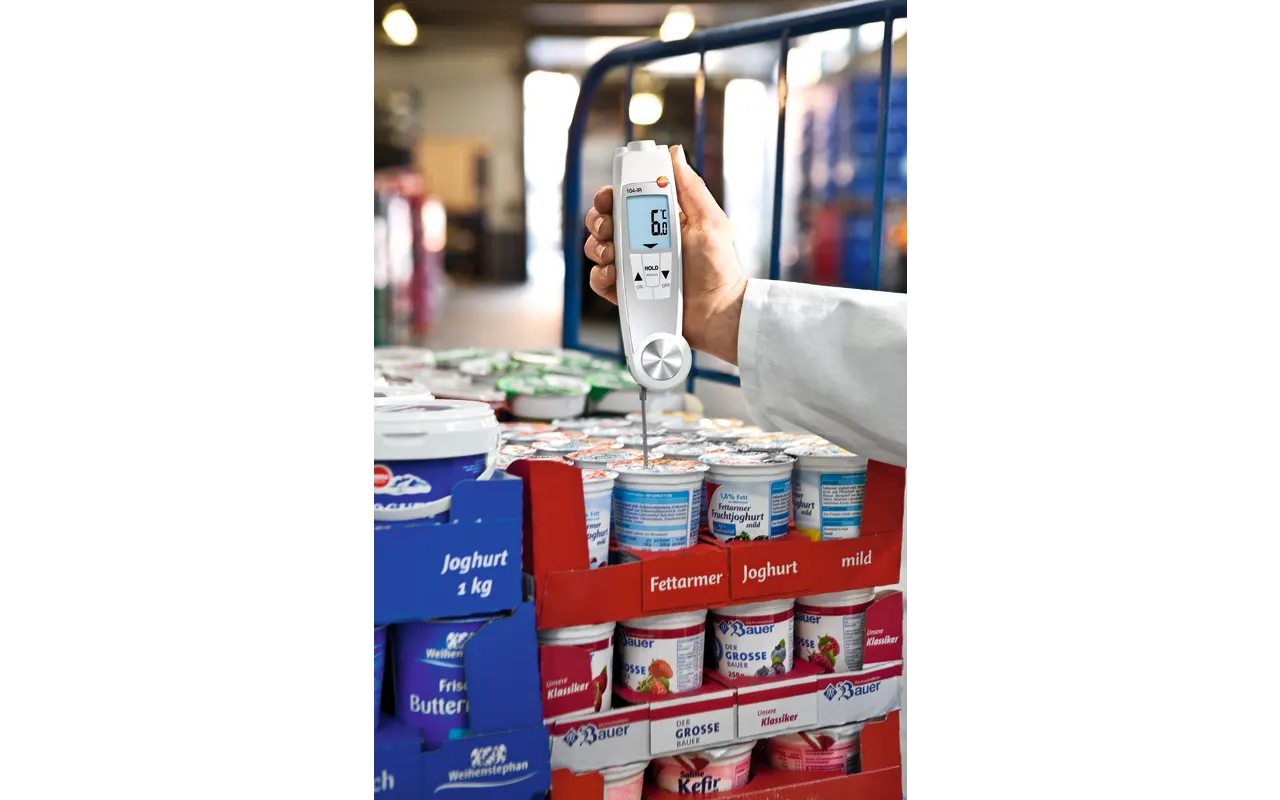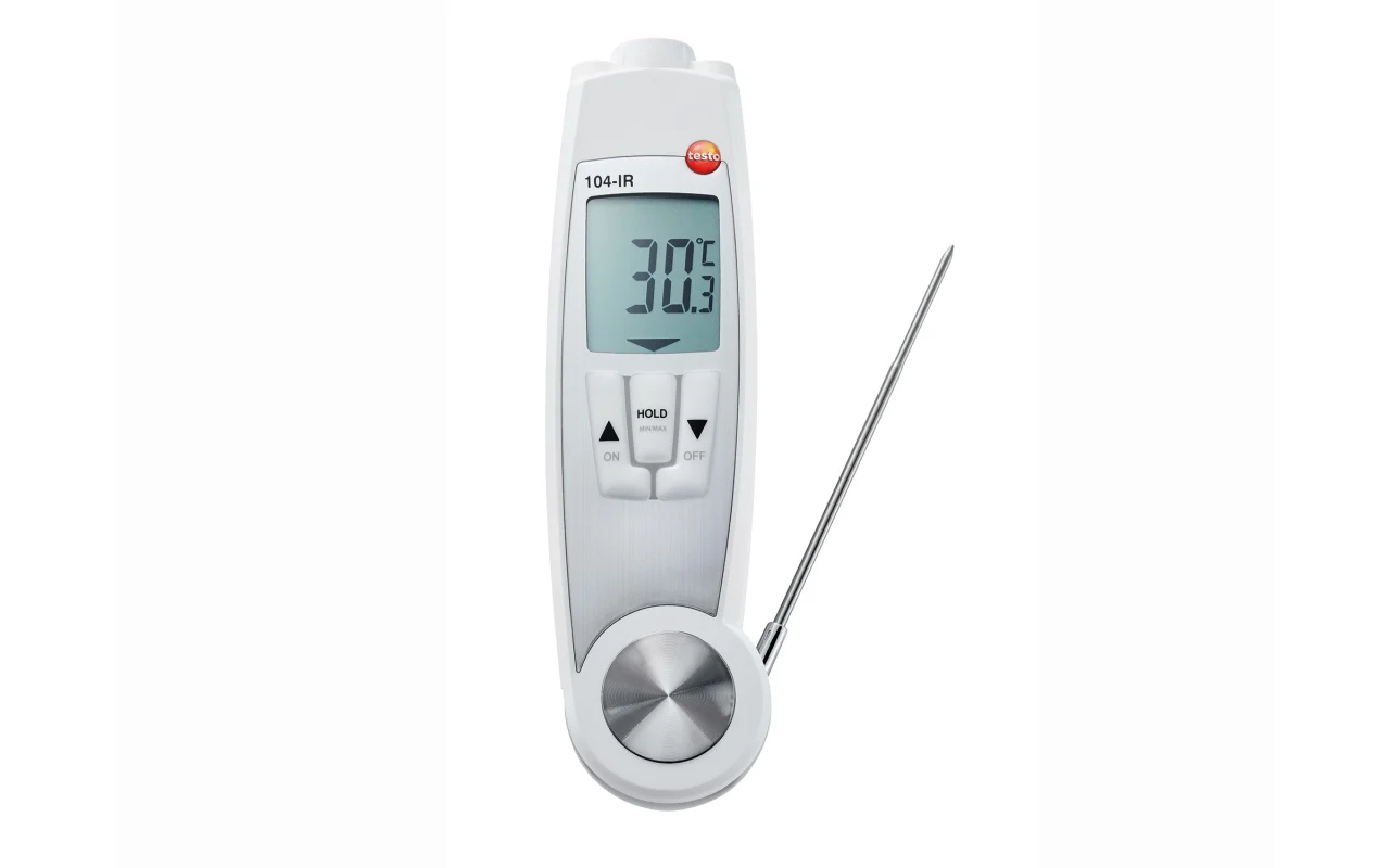 The testo 104-IR is a waterproof (IP65) penetration thermometer combined with an infrared sensor for non- contact temperature measurement. It can be used for all sorts of applications in the food sector. The testo 104- IR scans the surface temperature of individual foods or entire goods pallets without contact, particularly in the Incoming Goods department.