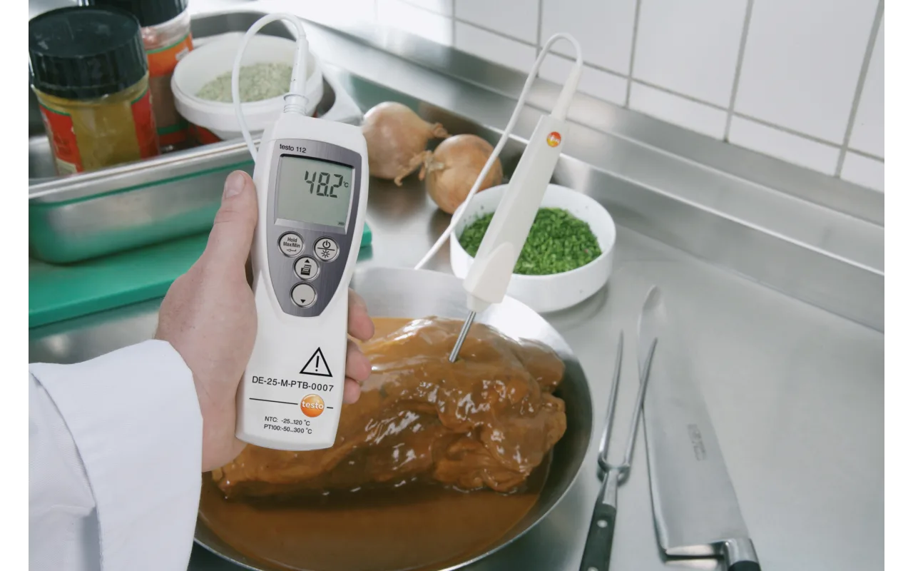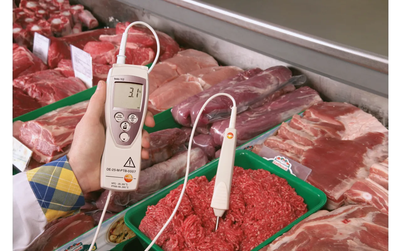 The officially calibratable temperature measuring instrument testo 112 was specially designed for official monitoring measurements. Thanks to the PTB type permit and the possibility of official calibration, the instrument is authorized for use in official measurements by food inspectors, assessors and authorities.