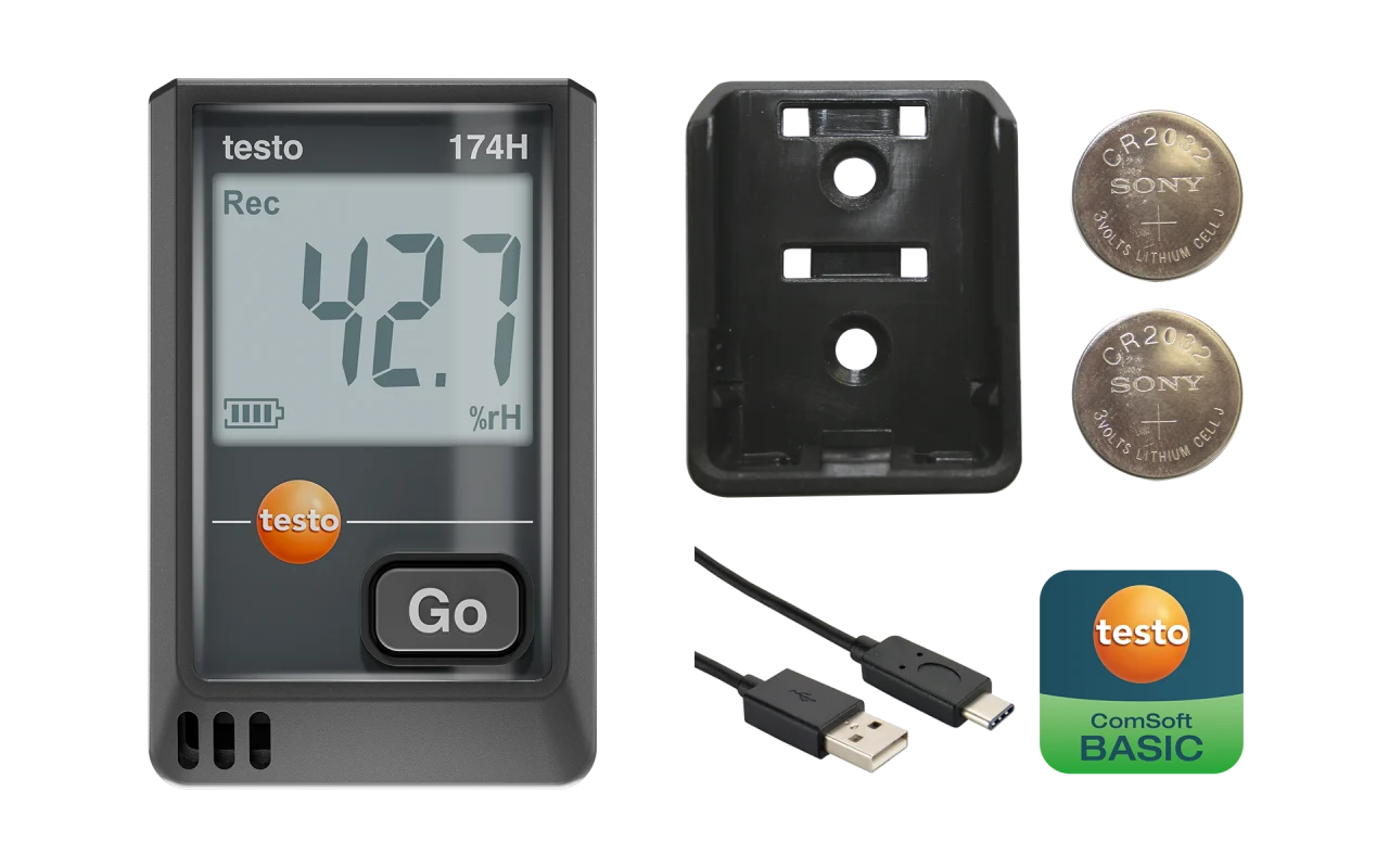 testo 174H, Mini data loggers for temperature and humidity with USB-C and PC software testo 174 H, 2-channel