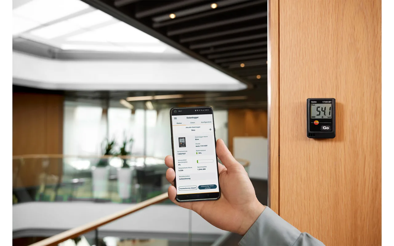 The Bluetooth models testo 174 H BT and testo 174 T BT enable convenient operation and display of the readings on a smartphone or tablet via the free testo Smart App, regardless of the measuring location.