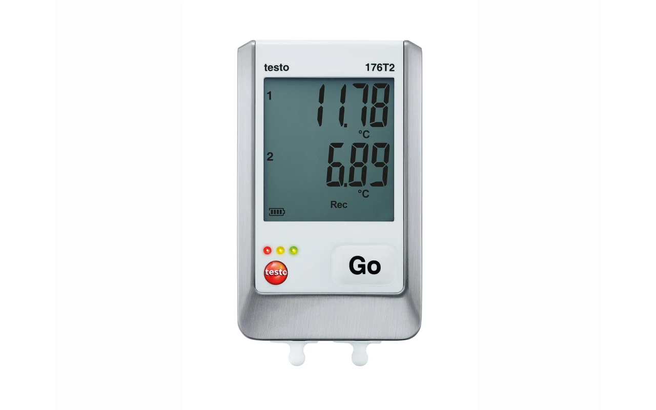 testo 176 T2, 2-channel temperature data logger with connections for high- precision external sensors (Pt100), incl. wall bracket, lock, battery and calibration protocol