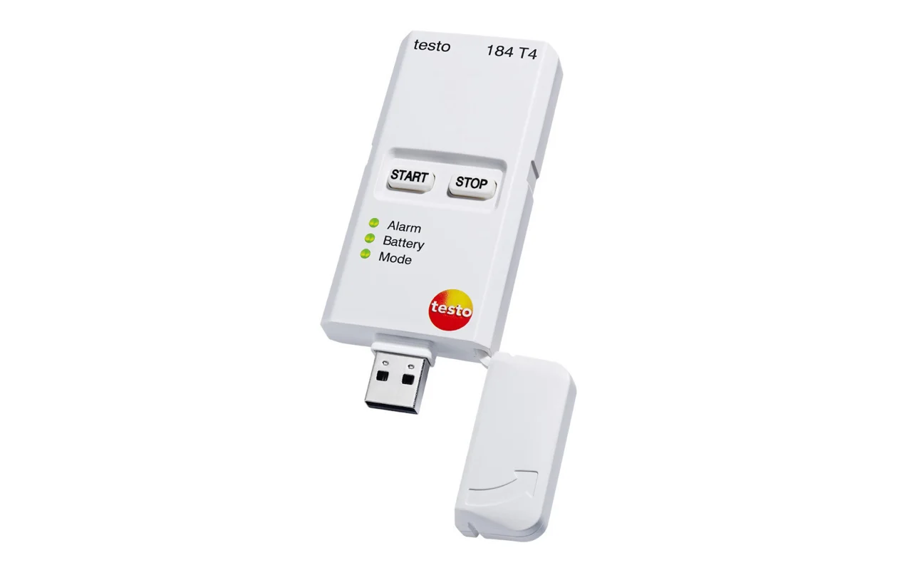 testo 184 T4, USB data logger for temperature, unlimited operating time thanks to replaceable battery