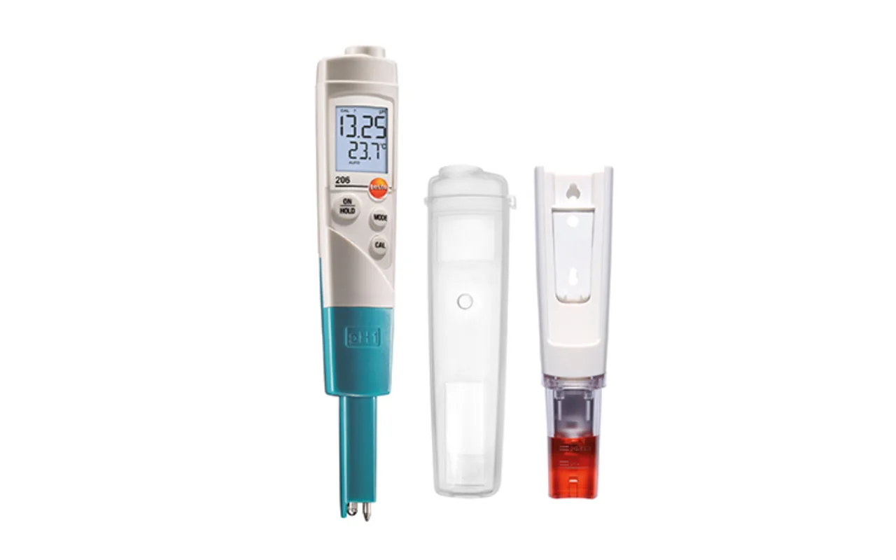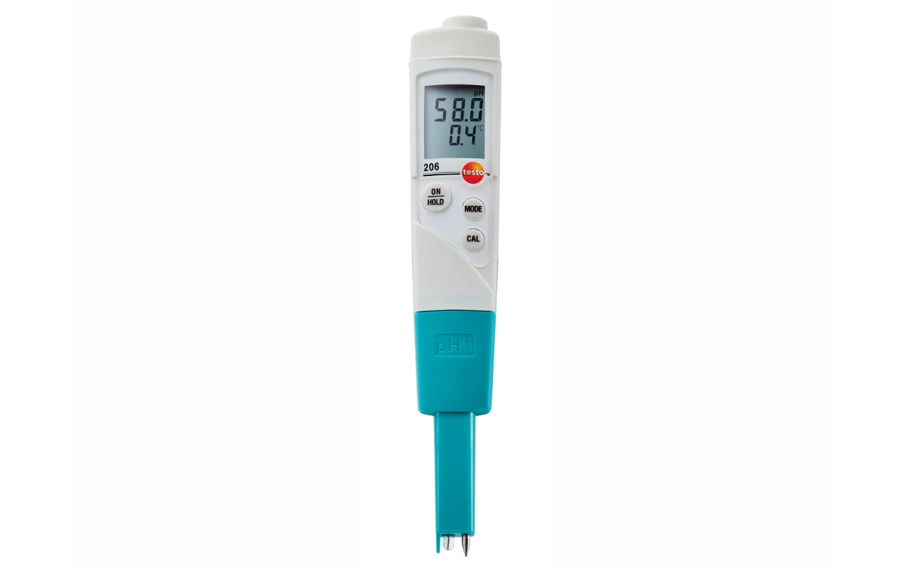 The testo 206 series is ideally suited for applications in liquid and semi-solid media. The instruments stand out thanks to the combination of a pH immersion probe and a temperature probe for precise and fast temperature compensation. Thanks to the large volume of gel electrolyte and the dual wall diaphragm, the probe is leak-proof, maintenance-free and insensitive to dirt.