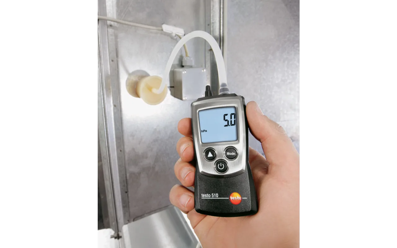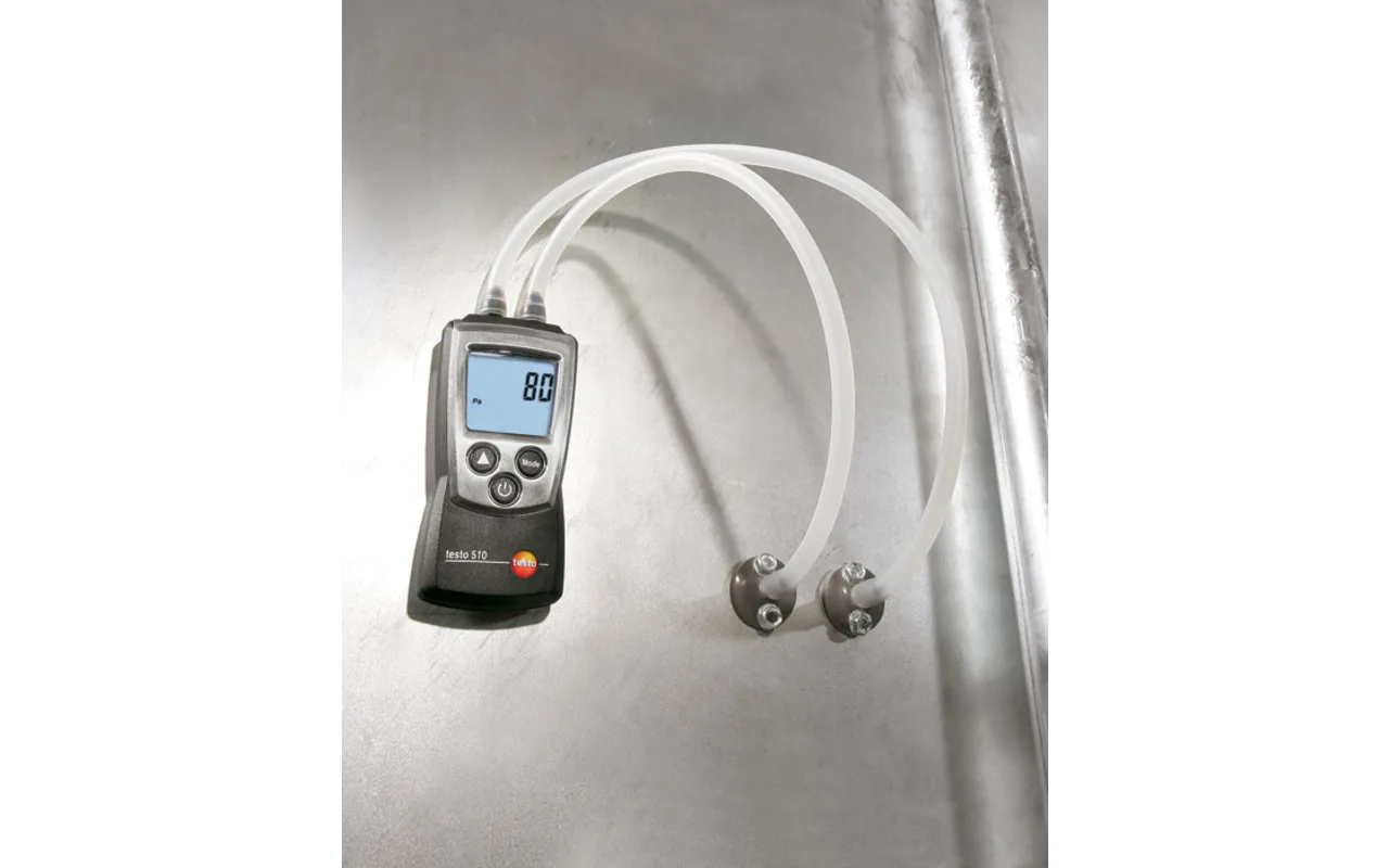 testo 510 measures differential pressure in the range from 0 to 100 hPa. The differential pressure measurement is temperature-compensated for accurate measurement values. The measurement values can be displayed in Pascal over the entire measurement range.