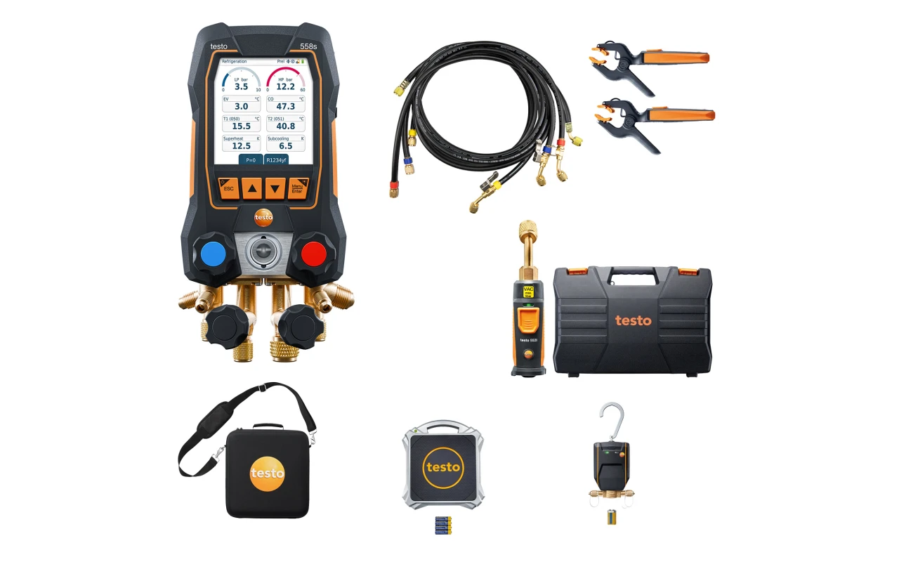 Get started right away with the ideal equipment for working on heat pumps. The comprehensive kit containing the testo 558s digital manifold offers the ideal basis for heat pump installation, service and maintenance.