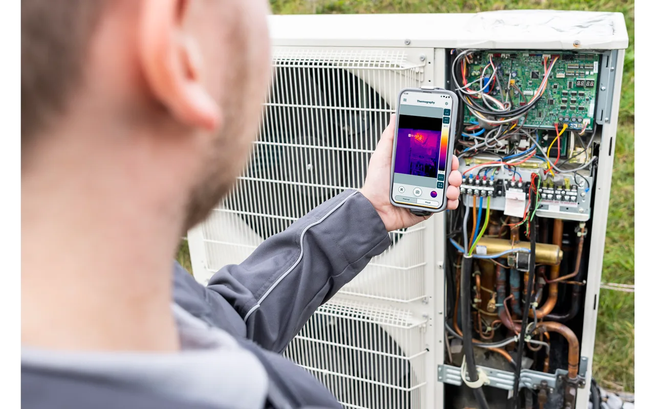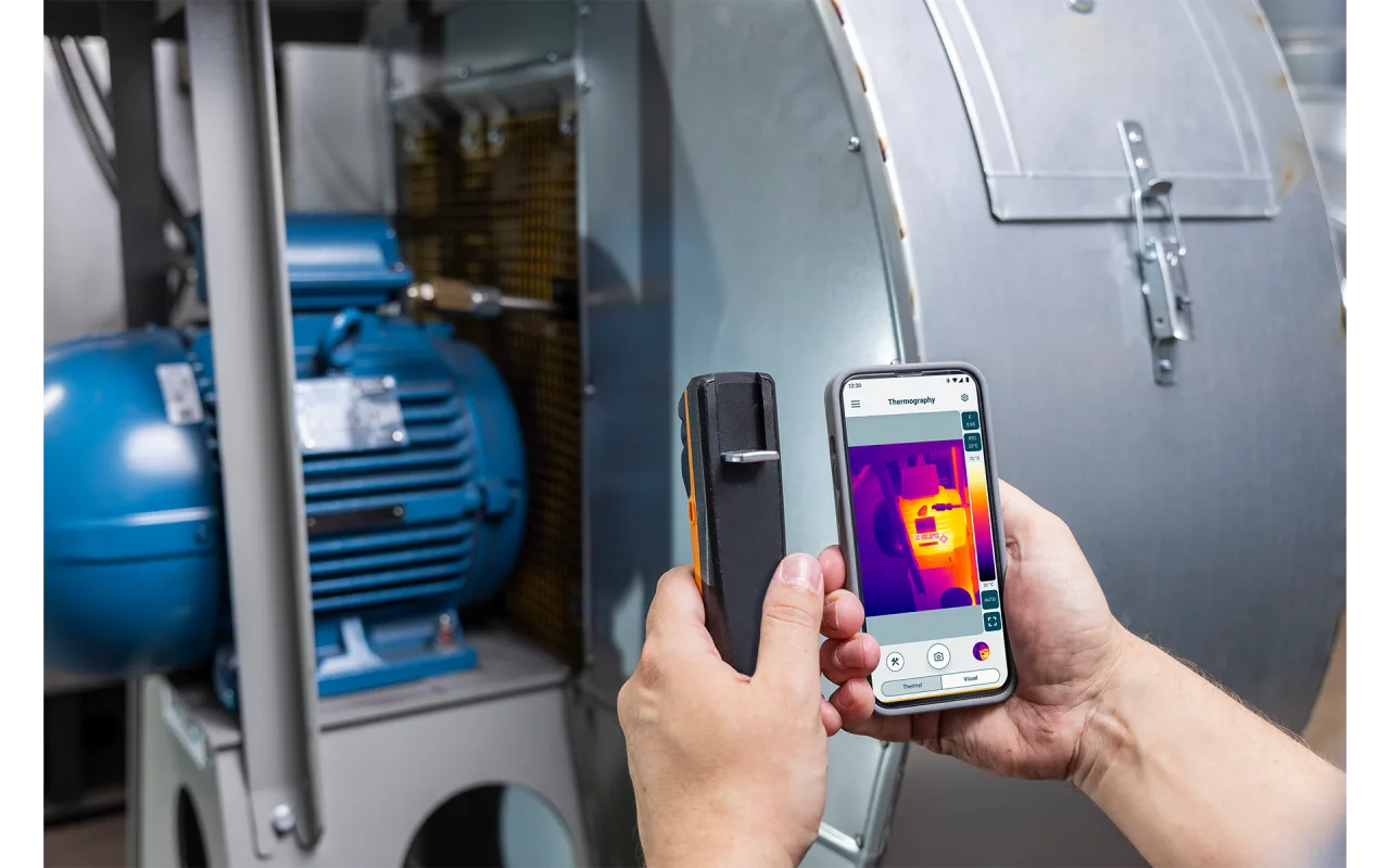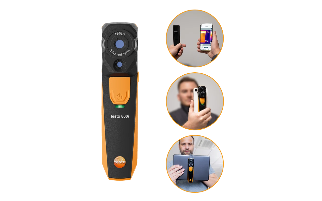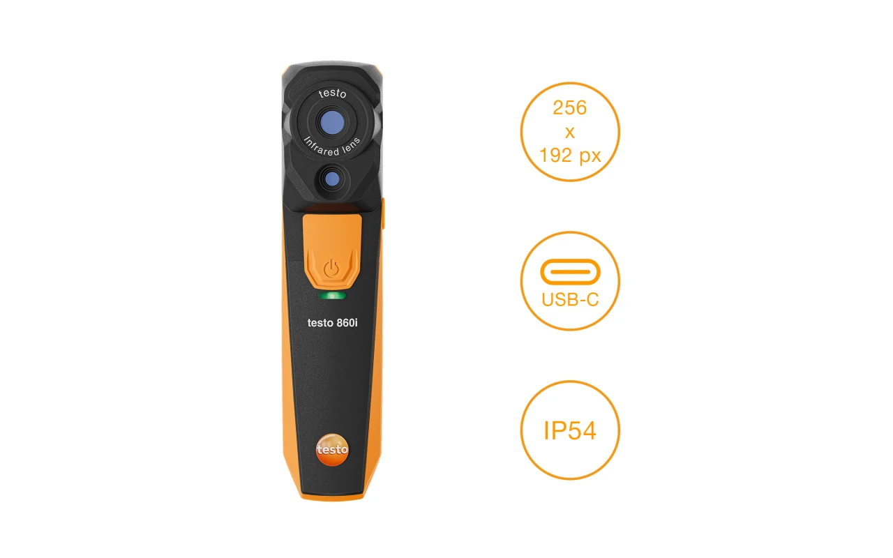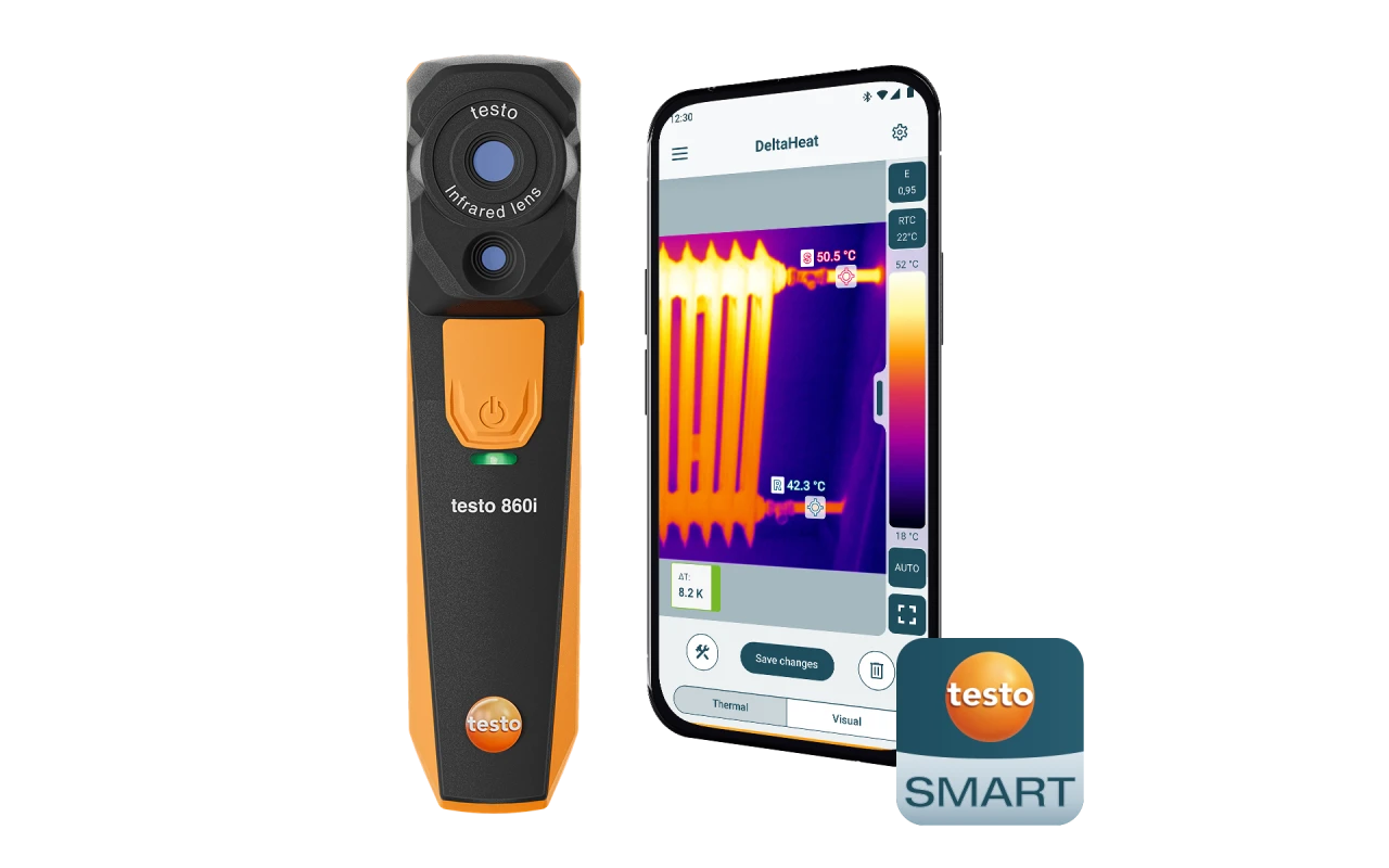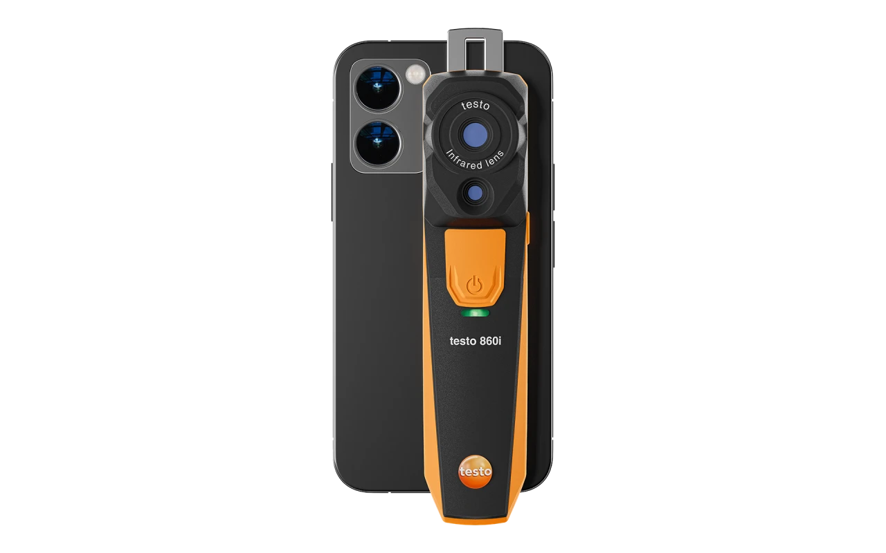 The new wireless thermal imager for smartphones testo 860i with its simple operation and display in the testo Smart App making it the perfect choice for quick spot checks in the HVAC trade, maintenance, buildings and many other applications