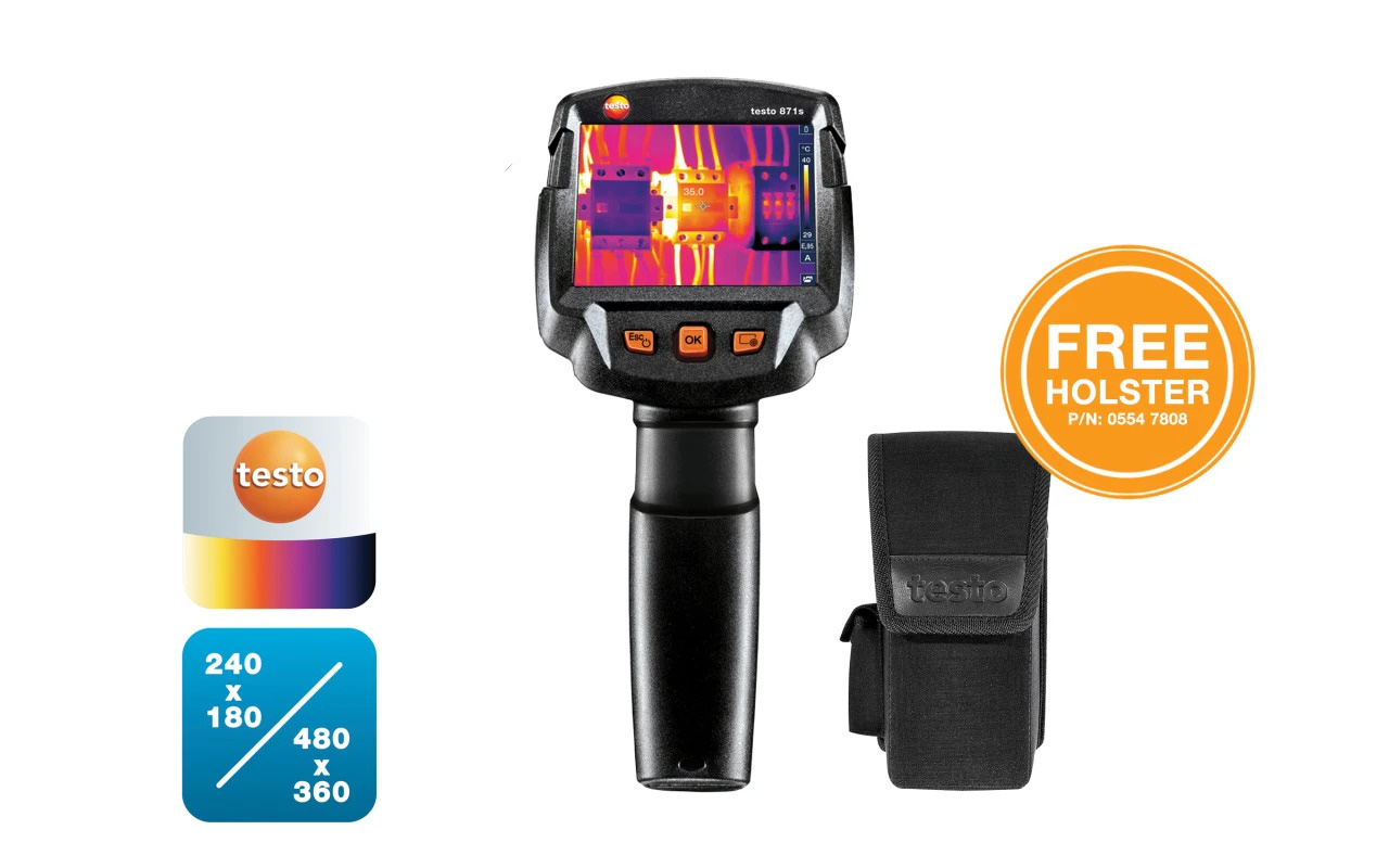 The testo 871 thermal imager offers a high-quality 240 x 180 pixel detector, connectivity via the testo Thermography App and numerous innovative functions. It fits comfortably in the hand and convinces with intuitive operation in a modern tile look.