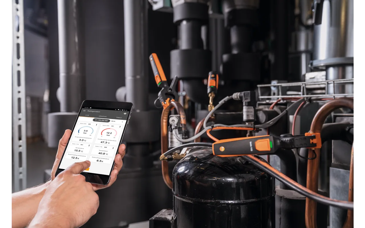 The ultimate kit for air conditioning, refrigeration and heating contractors, enabling the measurement of temperature, humidity, flow and pressure. In conjunction with a smartphone or tablet, the refrigeration kit is ideally suited to servicing and troubleshooting on air conditioning, refrigeration and heating systems, as well as their installation.